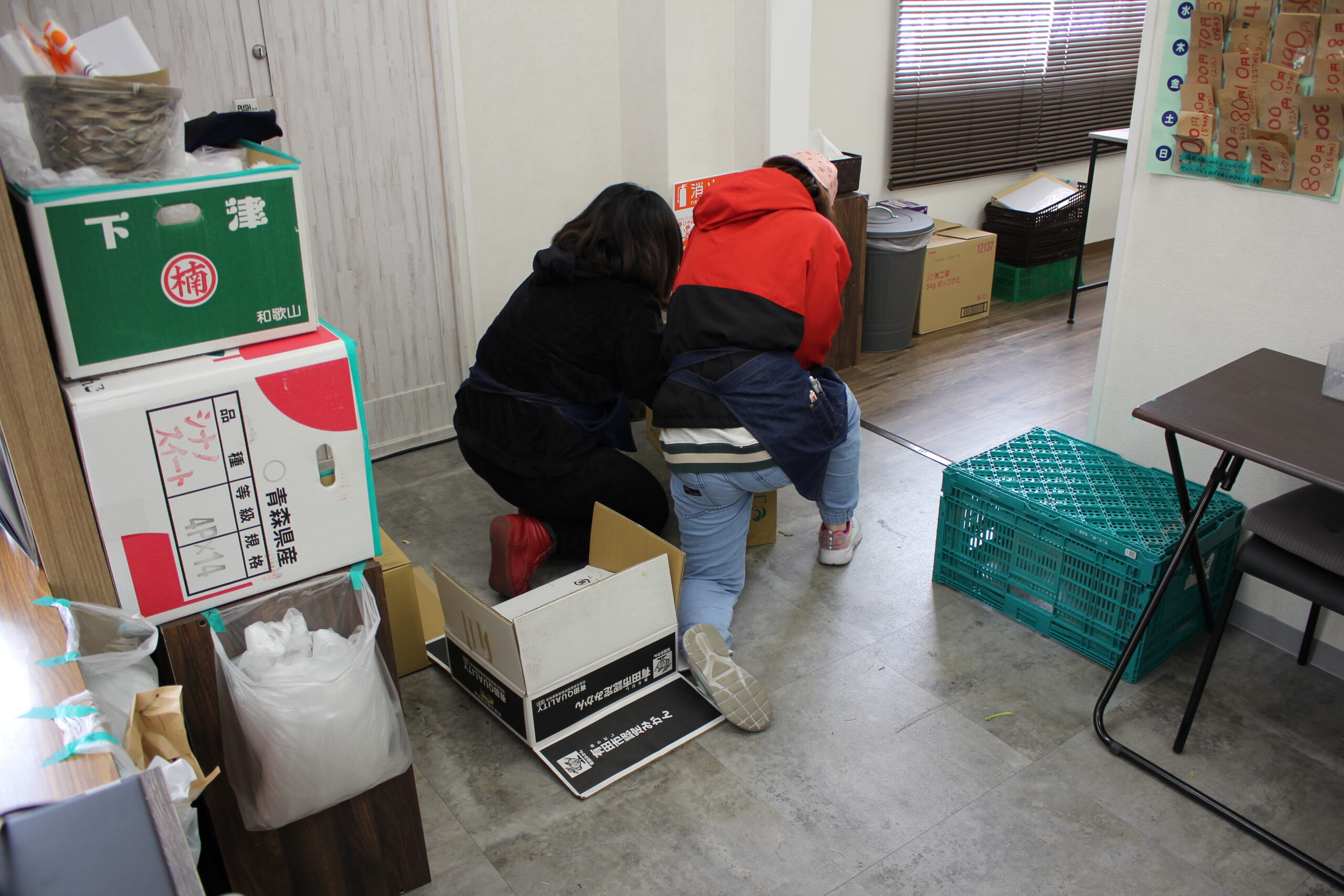 わんすてっぷの作業一覧わんすてっぷでは、一般就労へ向けたお仕事の練習の場として、八百屋でのレジのお手伝い、野菜の軽量、見た目のチェック、ポップ作成があります。その他、ネイルをしにきたお客さまの消毒や箱折りやクリアファイルに書類を入れるなどの軽作業もあります。